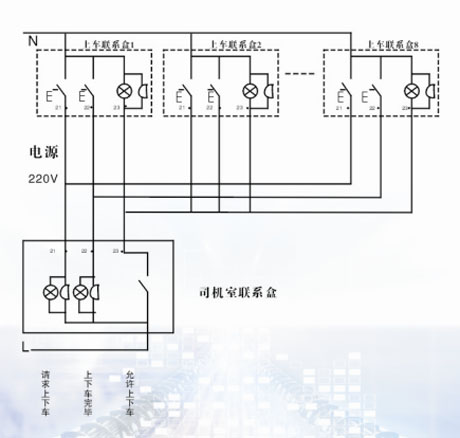 性能特點(diǎn): 1.按動(dòng)聯(lián)系盒按鈕:聯(lián)系盒“請(qǐng)求上下車”指示燈亮、蜂鳴器響(時(shí)間與按鈕動(dòng)作同步);司機(jī)室報(bào)警蜂鳴器(或語(yǔ)言)同步響,司機(jī)室主機(jī)顯示文本提示“有人請(qǐng)求上下車”;該操作如延時(shí)60秒無(wú)下步動(dòng)作響應(yīng),自動(dòng)復(fù)位清除。 2.司機(jī)如同意登機(jī),按動(dòng)應(yīng)答按鈕:聯(lián)系盒“允許上下車”指示燈亮,蜂鳴器長(zhǎng)響;司機(jī)室主機(jī)顯示文本提示“有人正在上下車”(或語(yǔ)音);同步切斷大車行走控制回路。 3.上下車完成后,按動(dòng)聯(lián)系盒按鈕:聯(lián)系盒“允許上下車”指示燈滅、蜂鳴器停,“上下車完成”指示燈亮;司機(jī)報(bào)警蜂鳴器響(或語(yǔ)音),司機(jī)室主機(jī)顯示文本提示“上下車完成”。 4.按動(dòng)司機(jī)就答按鈕:聯(lián)系盒“上下車完成”指示燈滅;司機(jī)室主機(jī)聲光消;同步恢復(fù)大車行走控制回路。 5.司機(jī)同意上車操作后如延時(shí)120秒后,如無(wú)下一步操作;司機(jī)室主機(jī)報(bào)警,提示“上下車超時(shí),請(qǐng)司機(jī)確認(rèn)”,按動(dòng)司機(jī)室應(yīng)答按鈕,解除所有操作,復(fù)位。
