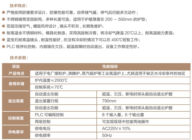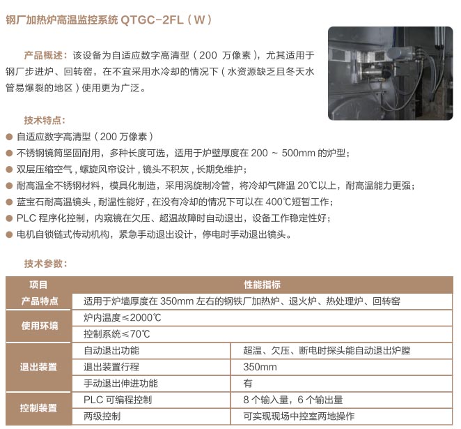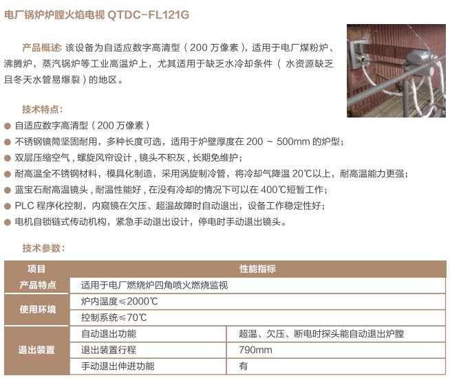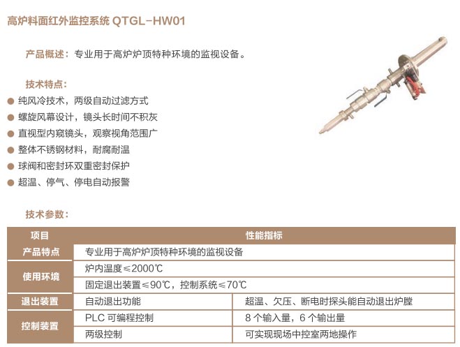 爐窯高溫監(jiān)測(cè)監(jiān)控系統(tǒng)是專為工業(yè)高溫爐窯監(jiān)測(cè)監(jiān)控的設(shè)計(jì)的智慧管理平臺(tái),是針對(duì)爐壁開(kāi)孔和爐窯視像有嚴(yán)格要求的高溫爐窯而研制的高溫工業(yè)電視。利用特種高溫孔式光學(xué)鏡頭,鏡頭設(shè)計(jì)采用中繼物鏡,兩次成像系統(tǒng),使像面在遠(yuǎn)離觀察孔的CCD靶面上形成,最大限度的減少進(jìn)入攝像機(jī)的熱輻射,致力為冶金、電力、建材、礦山、化工等行業(yè)服務(wù)。我公司研發(fā)主導(dǎo)產(chǎn)品已擁有第三代SG內(nèi)窺式高溫工業(yè)電視系列、爐壁式高溫工業(yè)電視系列、內(nèi)窺式拐角高溫工業(yè)電視系列、鍋爐汽包水位電視系統(tǒng)等成套設(shè)備,以及各種風(fēng)冷防護(hù)罩,水冷防護(hù)罩,渦旋制冷防護(hù)罩等工業(yè)監(jiān)控設(shè)備配套產(chǎn)品。產(chǎn)品廣泛應(yīng)用于鋼鐵廠加熱爐、退火爐,電廠鍋爐爐膛火焰、水泥廠回轉(zhuǎn)窯窯頭看火、篦冷機(jī)看料、玻璃廠玻璃熔窯等特殊高溫環(huán)境。幫助用戶進(jìn)行工業(yè)爐實(shí)時(shí)電視監(jiān)測(cè)及控制,解決設(shè)備的運(yùn)行故障等,對(duì)用戶改善產(chǎn)品質(zhì)量、降低成本、安全生產(chǎn)有著獨(dú)特的成效。受到了用戶的一致好評(píng)。